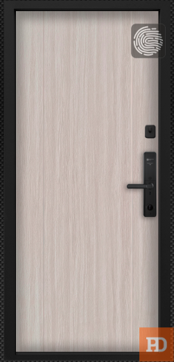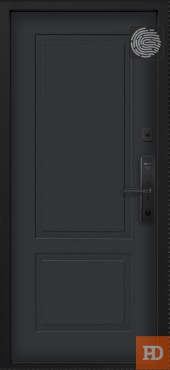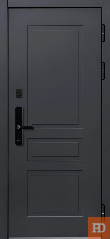 • ОТДЕЛКА СНАРУЖИ: Лист стали, окрашен порошково полимерной краской, цвет "Муар черный", декоративная МДФ-панель 10 мм, цвет - "Шагрень графит"