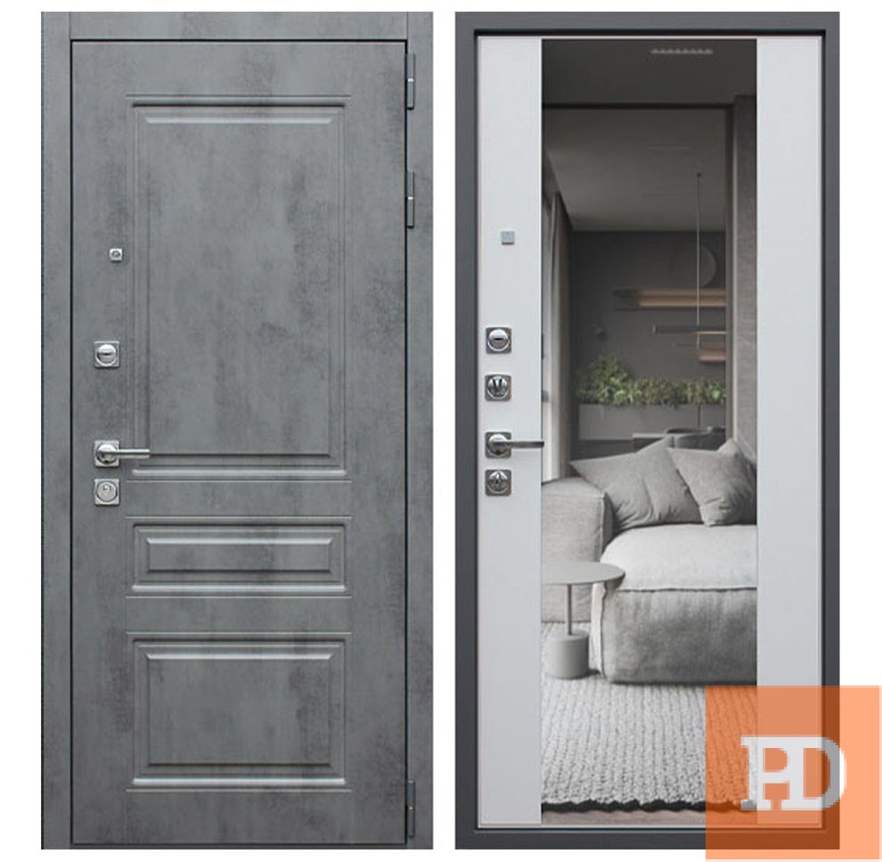 | Внешняя отделка | Лист металла 1,5 мм. Экошпонированная панель МДФ 10 мм. Объемная фрезеровка. Цвет "бетон темный". Наличник МДФ 80 мм. |