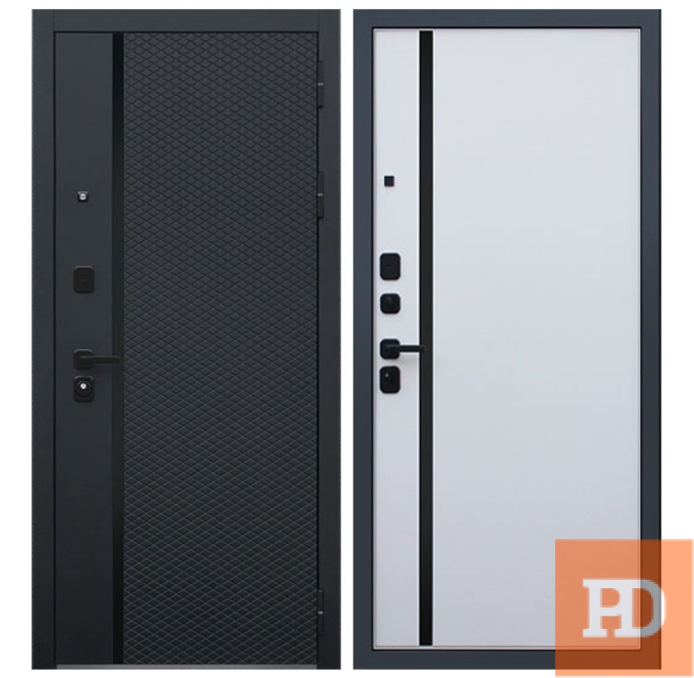 | Внешняя отделка | Лист металла 1,5 мм. Экошпонированная панель МДФ 10 мм (дизайн ФЛС). Цвет "черный кварц". Вертикальная вставка из черного глянцевого лакобеля. Объемная фрезеровка. Наличник МДФ гладкий, 80 мм. |