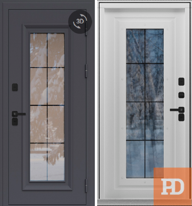 - ОТДЕЛКА СНАРУЖИ: Лист стали + трехкамерный тонированный стеклопакет, цвет RAL 7024