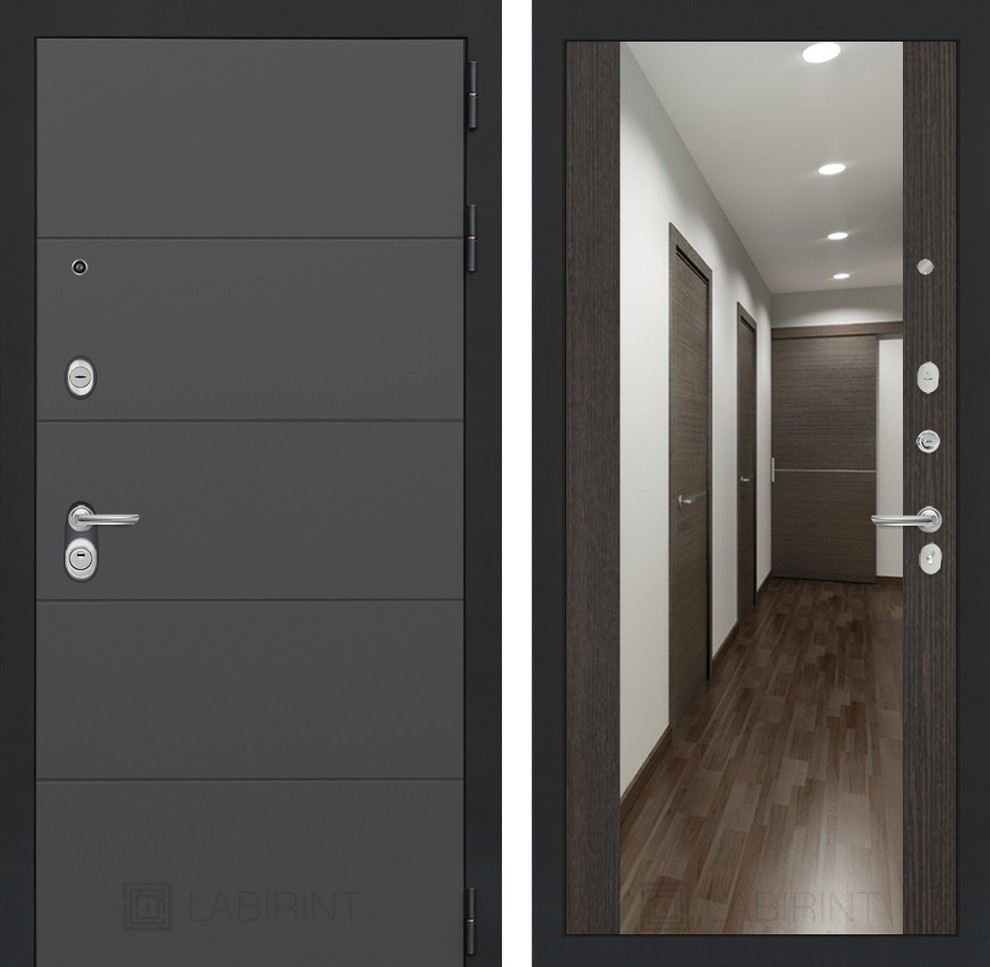 | Отделка снаружи | Современная декоративная МДФ панель 10 мм, цвет "Графит софт" с металлическим наличником, цвет покраски металла "Муар" серый с блестками |