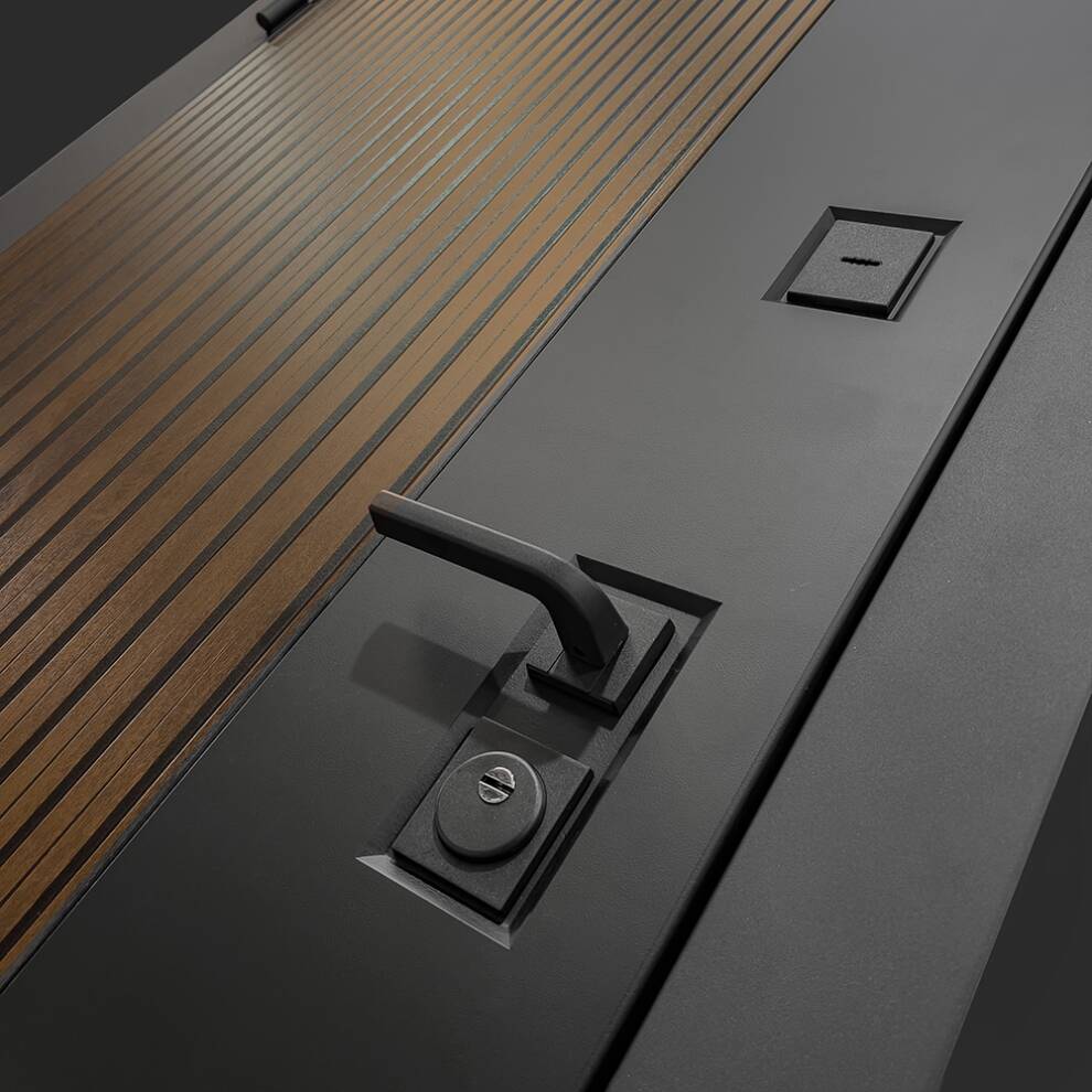 | Полный комплект | Черная фурнитура (полимерная): накладки сувальдные со шторкой, накладка под цилиндр, дверная ручка, ночная задвижка, металлический эксцентрик с защитной вставкой. |