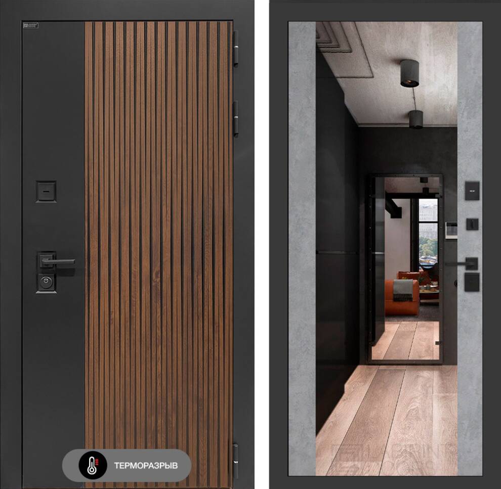 | Внутренняя отделка | Декоративная МДФ панель 12 мм с широким зеркалом, цвет "Бетон светлый" |