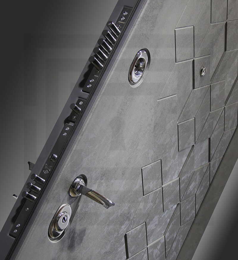 | Полный комплект | Броненакладка врезная, накладки под сувальдный замок, глазок , дверная ручка, ночная задвижка, цилиндр ключ-вертушка (производитель не регламентируется), регулируемый эксцентрик. |