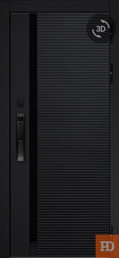 - ОТДЕЛКА СНАРУЖИ: Лист стали, окрашен порошково полимерной краской, цвет "Муар черный", декоративная МДФ-панель 10 мм, цвет - "Черный кварц"