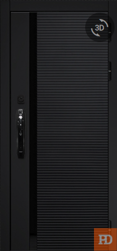- ОТДЕЛКА СНАРУЖИ: Лист стали, окрашен порошково полимерной краской, цвет "Муар черный", декоративная МДФ-панель 10 мм, цвет - "Черный кварц"