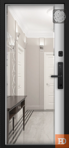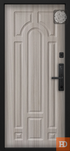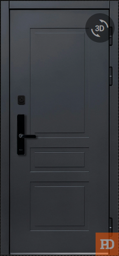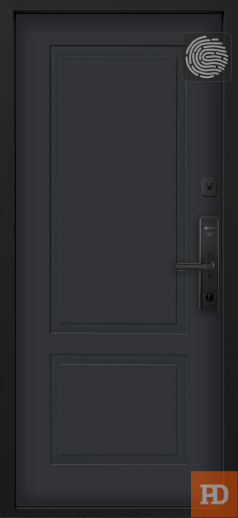 • ОТДЕЛКА СНАРУЖИ: Лист стали, окрашен порошково полимерной краской, цвет "Муар черный", декоративная МДФ-панель 10 мм, цвет - "Шагрень графит"
