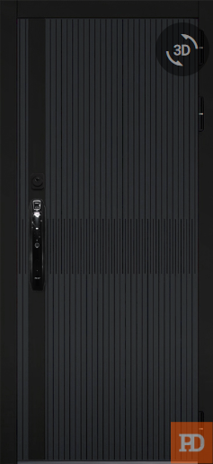 • ОТДЕЛКА СНАРУЖИ: Лист стали, окрашен порошково полимерной краской, цвет "Муар черный", декоративная МДФ-панель 10 мм, цвет - "Черный кварц" + "Шагрень графит"