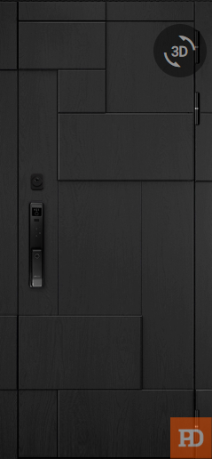 - ОТДЕЛКА СНАРУЖИ: Лист стали, окрашен порошково полимерной краской, цвет "Муар черный", декоративная МДФ-панель 10 мм, цвет - "Ясень черный"