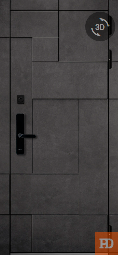 - ОТДЕЛКА СНАРУЖИ: Лист стали, окрашен порошково полимерной краской, цвет "Муар черный", декоративная МДФ-панель 10 мм, цвет - "Бетон лофт графит"