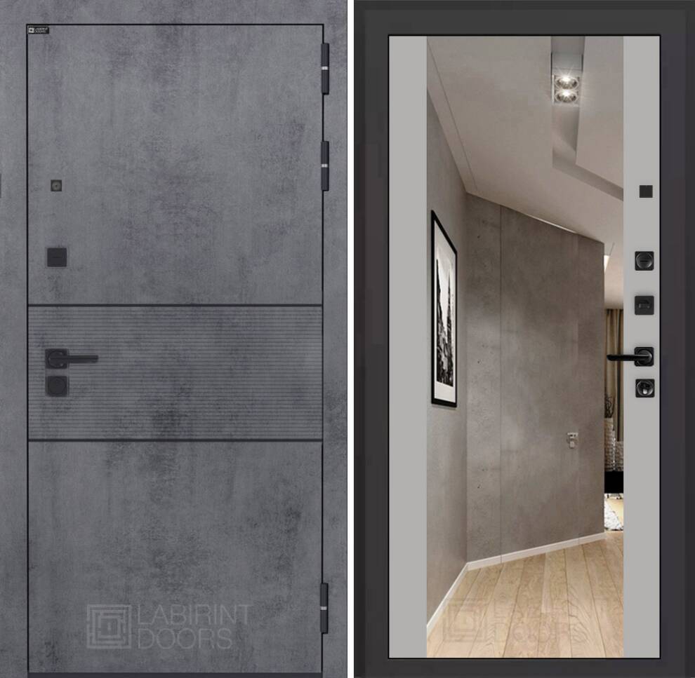 | Отделка снаружи | Современная МДФ панель 10 мм с наличником, цвет "Бетон темный", вставка черный молдинг |