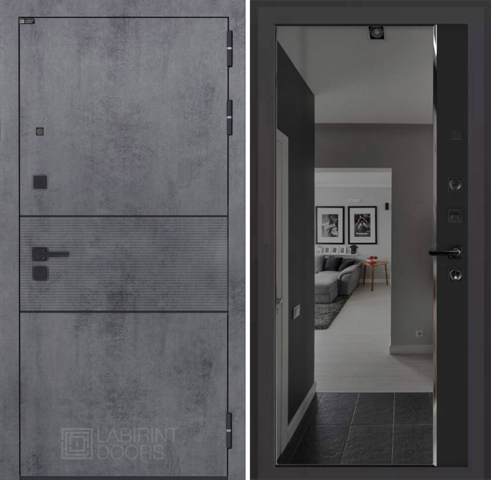 | Отделка снаружи | Современная МДФ панель 10 мм с наличником, цвет "Бетон темный", вставка черный молдинг |