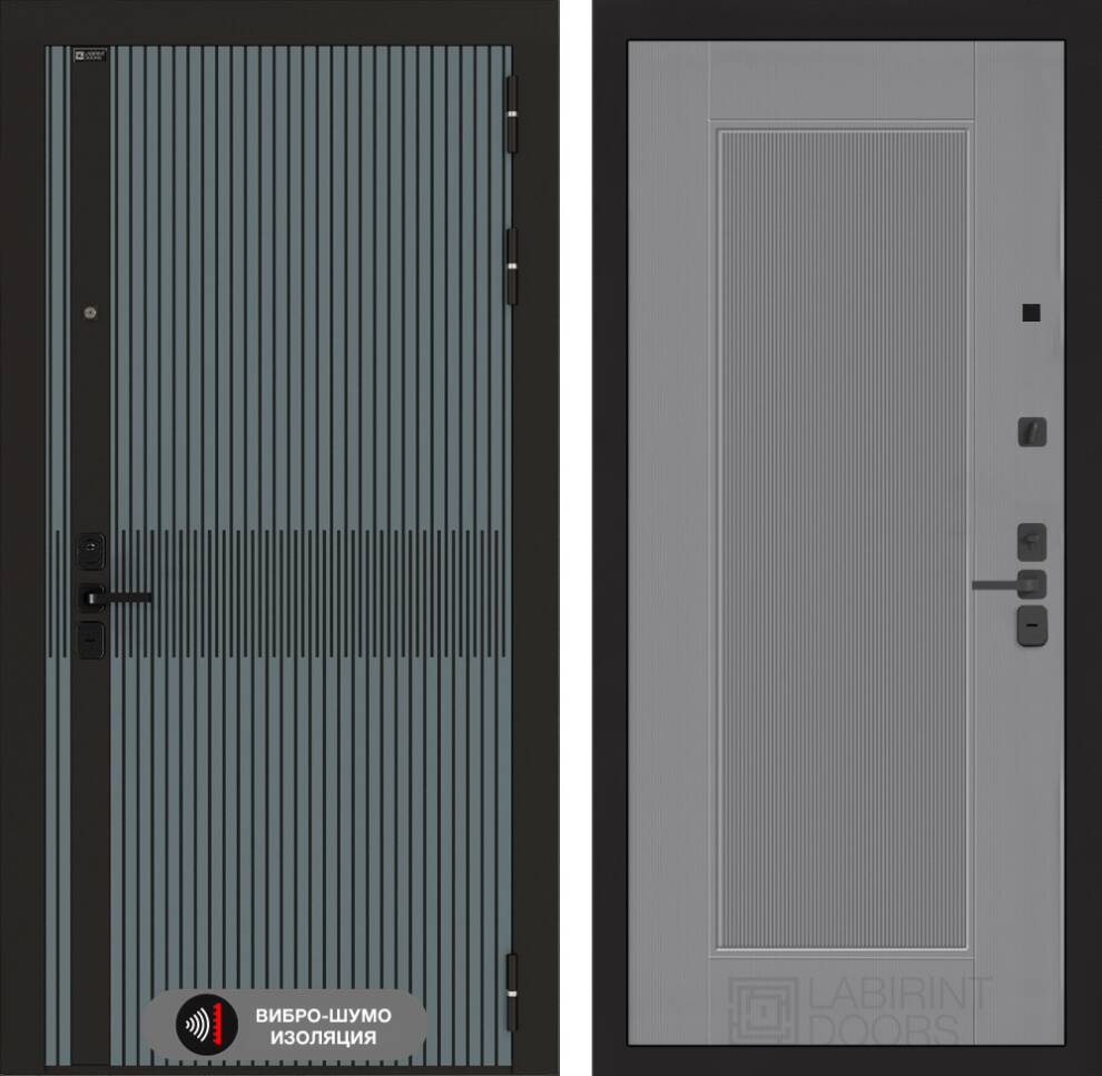 Отделка снаружи Фрезерованная МДФ панель 10 мм, цвет "Веллюто Верде" с патиной и вставкой из металла в цвет наличника
