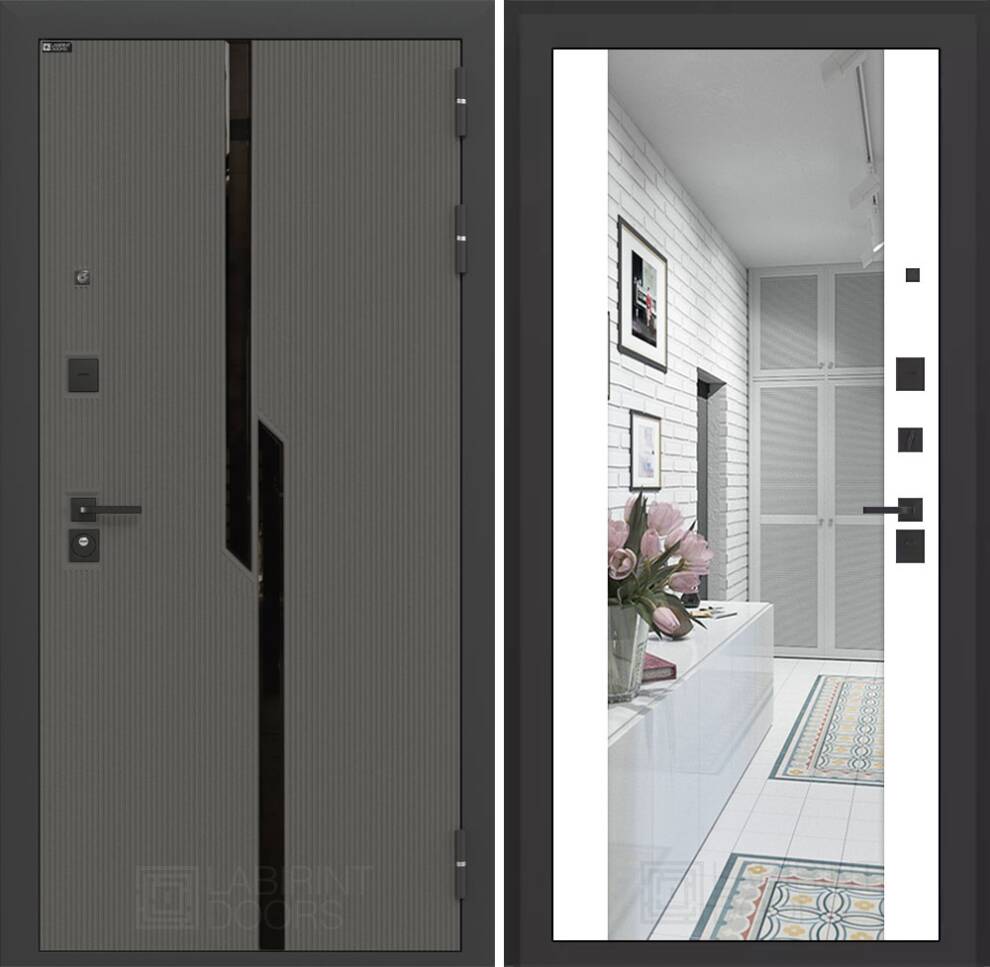 | Отделка снаружи | Декоративная МДФ панель 10 мм с черным стеклом фацет, цвет "Лофт графит" с металлическим наличником |