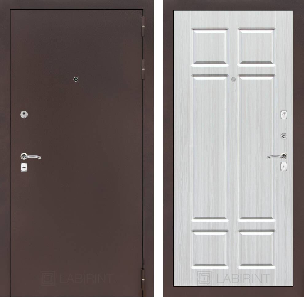 | Полный комплект | Броненакладка накладная, декоративная накладка, глазок , дверная ручка, ночная задвижка, цилиндр ключ-вертушка (производитель не регламентируется), регулируемый эксцентрик. |
