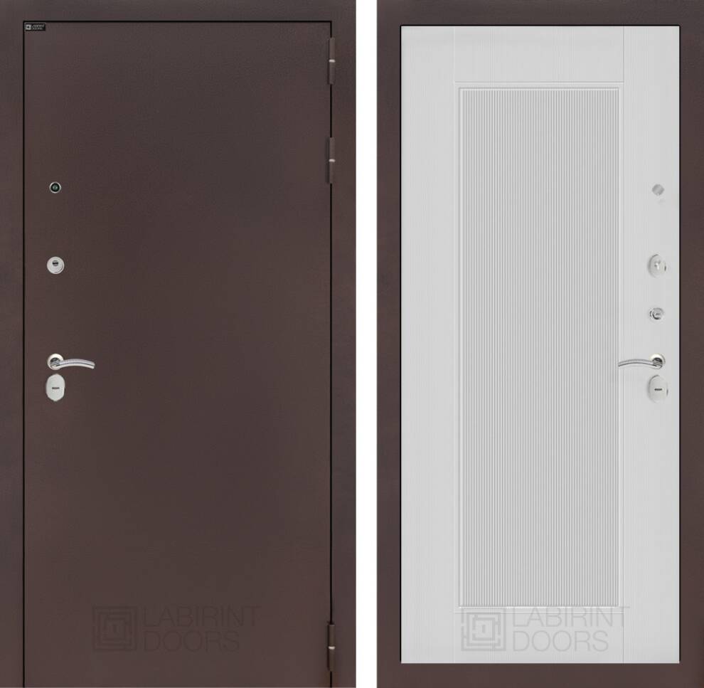 Входная дверь Классик антик медный 30 — Белый рельеф софт