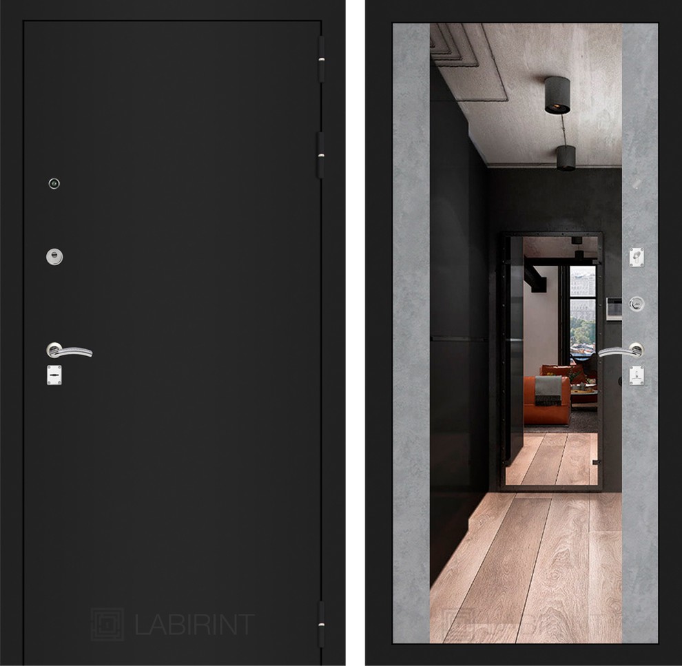 Входная дверь Классик шагрень черная с Зеркалом Максимум — Бетон светлый