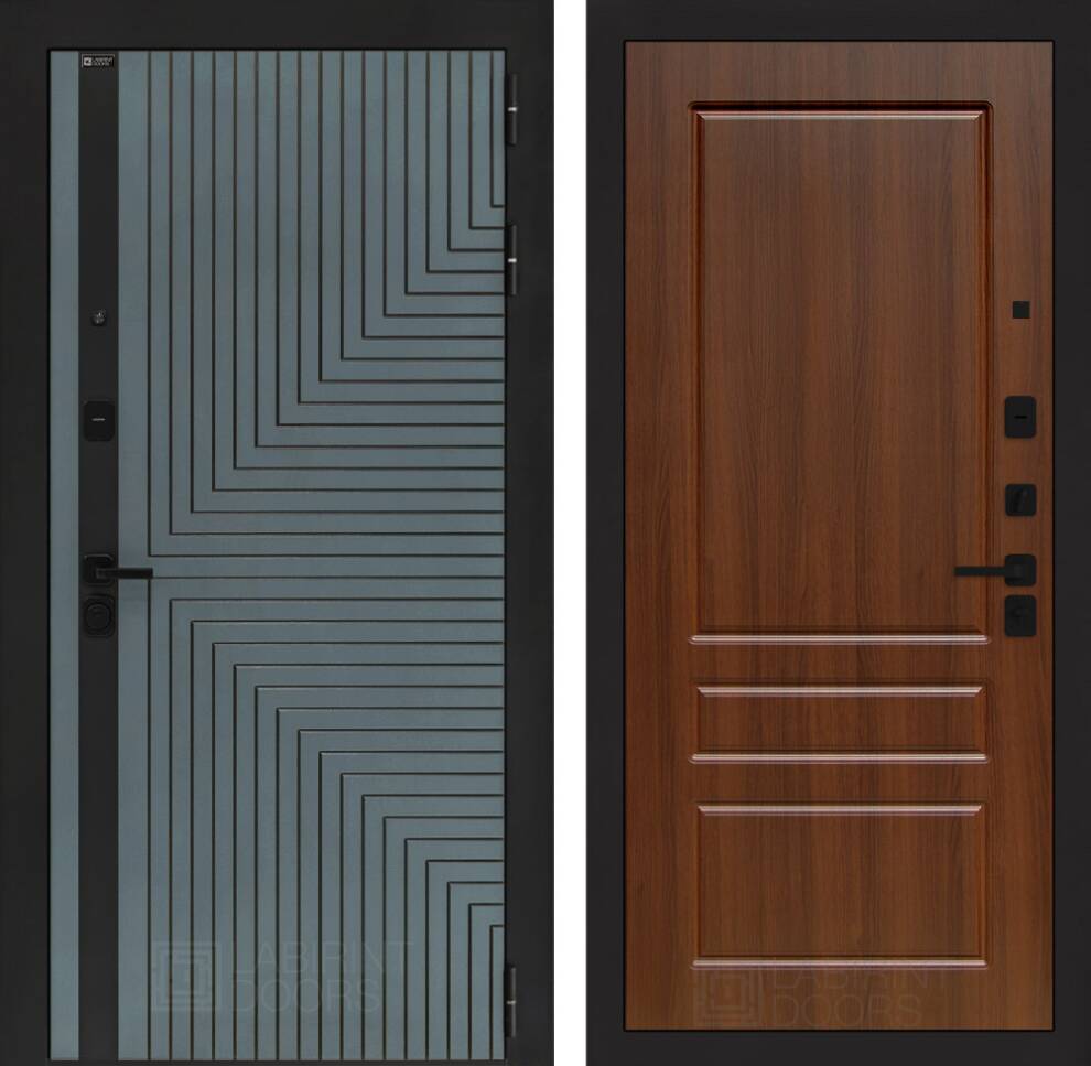| Полный комплект | Фурнитура в черном цвете: Броненакладка врезная, накладка со шторкой, глазок , дверная ручка, ночная задвижка. Цилиндр ключ-вертушка (производитель не регламентируется), регулируемый эксцентрик. |