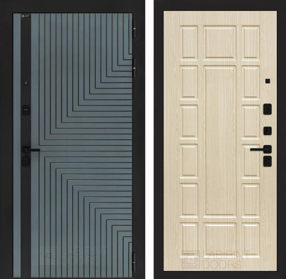 Отделка снаружи Фрезерованная МДФ панель 10 мм, цвет "Веллюто Верде" с патиной и вставкой из металла в цвет наличника