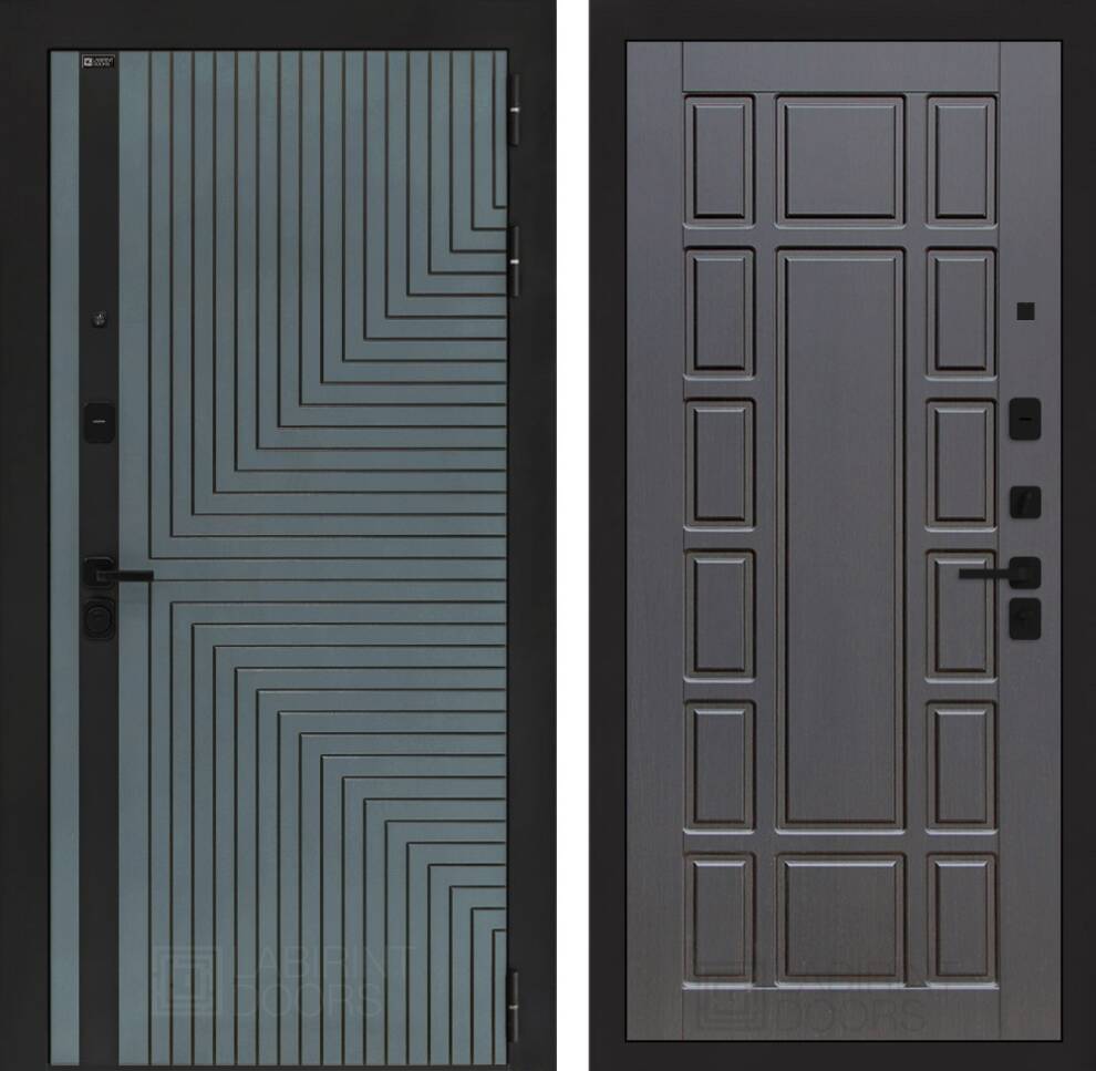 Отделка снаружи Фрезерованная МДФ панель 10 мм, цвет "Веллюто Верде" с патиной и вставкой из металла в цвет наличника