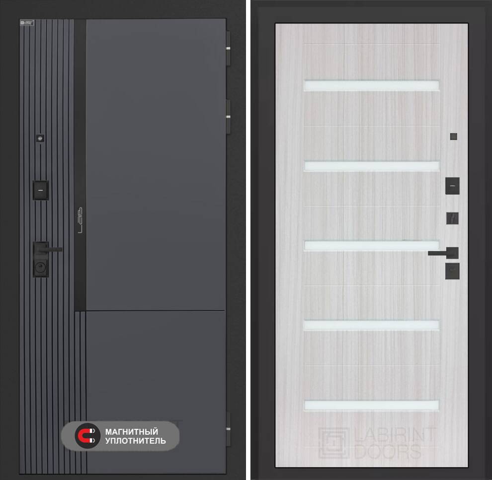 | Полный комплект | Фурнитура в черном цвете: Броненакладка врезная, накладка со шторкой, глазок , дверная ручка, ночная задвижка. Цилиндр ключ-вертушка (производитель не регламентируется), регулируемый эксцентрик. |