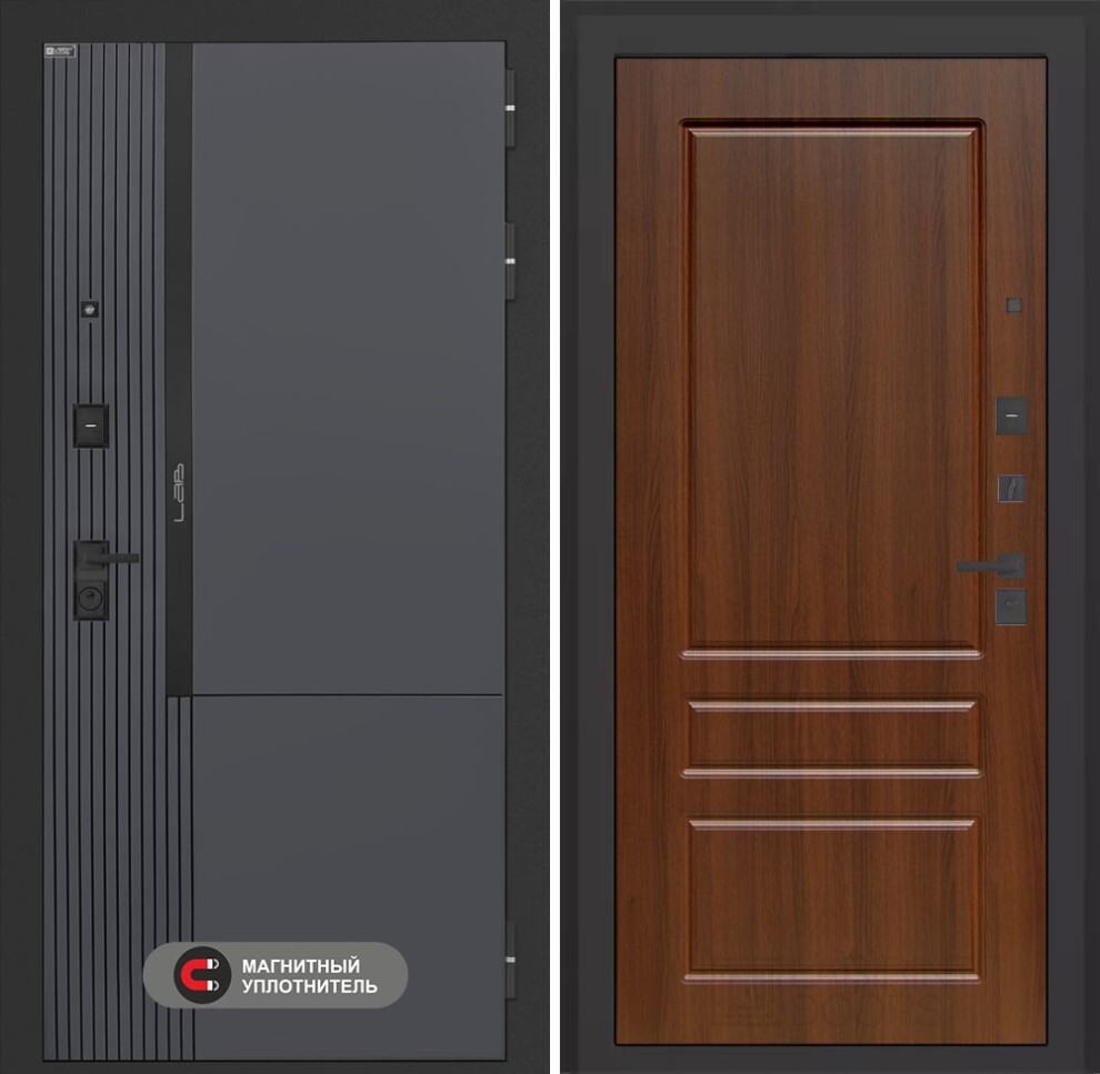 | Отделка снаружи | Фрезерованная МДФ панель 10 мм, цвет "Веллюто Оскуро" с патиной и вставкой из металла в цвет наличника (заподлицо) |