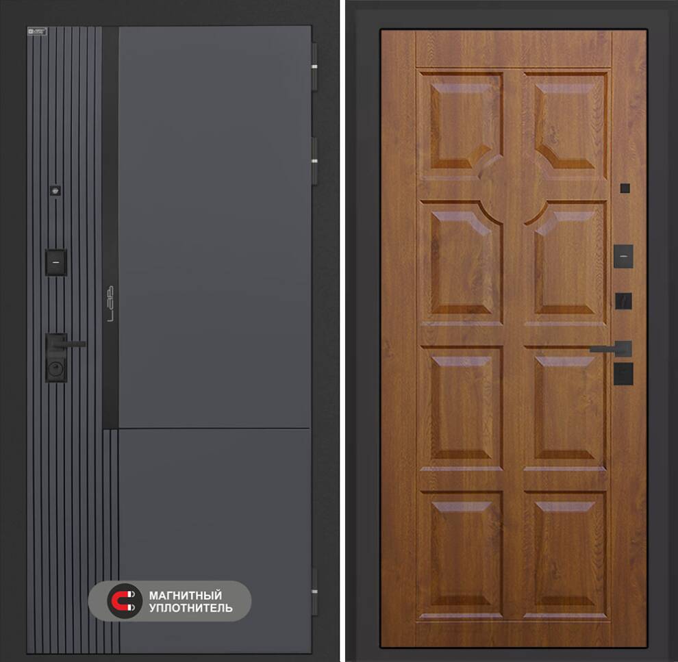| Отделка снаружи | Фрезерованная МДФ панель 10 мм, цвет "Веллюто Оскуро" с патиной и вставкой из металла в цвет наличника (заподлицо) |