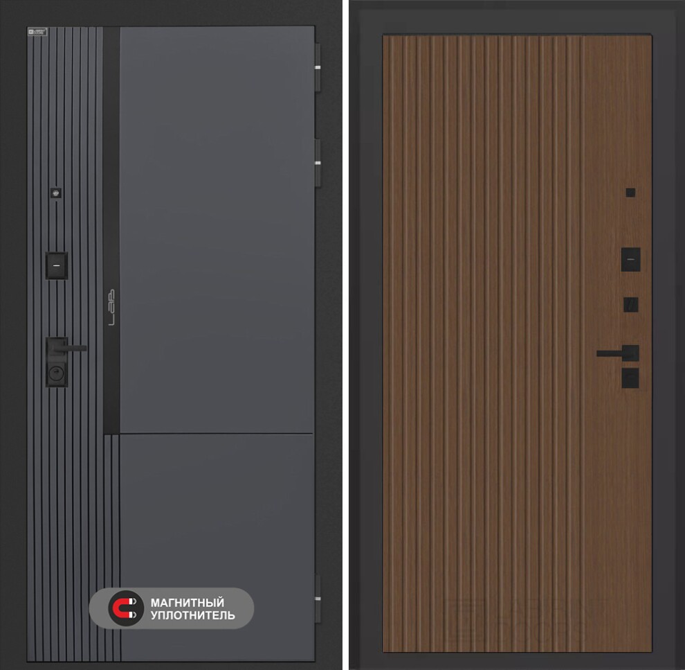 | Отделка снаружи | Фрезерованная МДФ панель 10 мм, цвет "Веллюто Оскуро" с патиной и вставкой из металла в цвет наличника (заподлицо) |