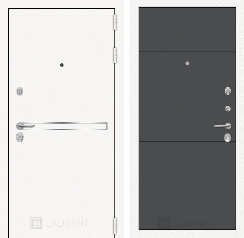 Отделка снаружи Металл с покрытием "Шагрень" белая, зеркальная вставка из нержавеющей стали