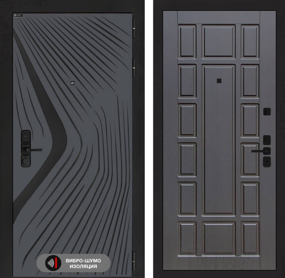 Отделка снаружи Фрезерованная МДФ панель 10 мм, цвет "Веллюто Оскуро" с патиной и вставкой из металла в цвет наличника