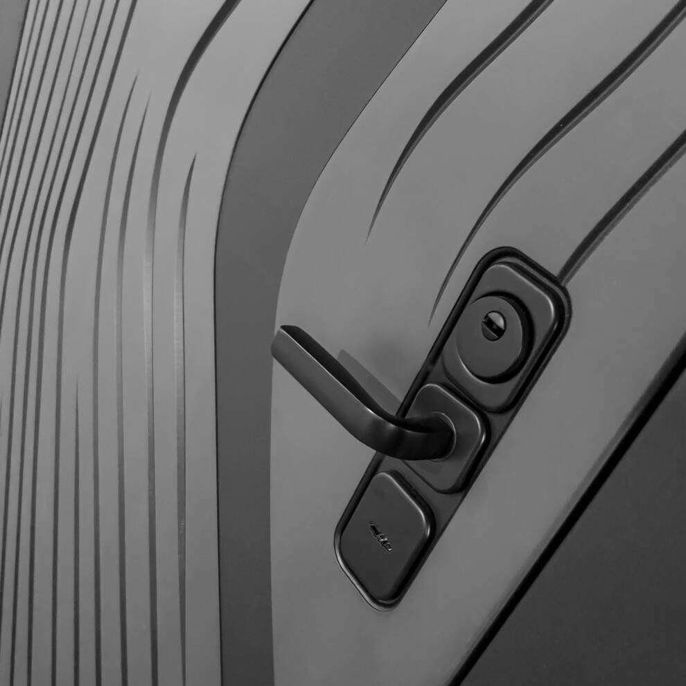 | Полный комплект | Фурнитура в черном цвете: Броненакладка врезная, накладка со шторкой, глазок , дверная ручка, ночная задвижка. Цилиндр ключ-вертушка (производитель не регламентируется), регулируемый эксцентрик. |