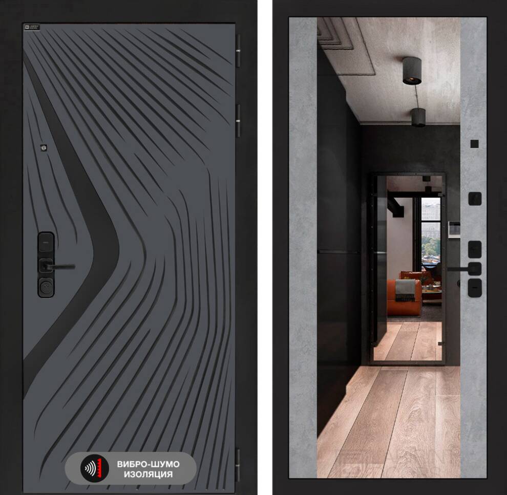Входная дверь Леолаб с Зеркалом Максимум — Бетон светлый
