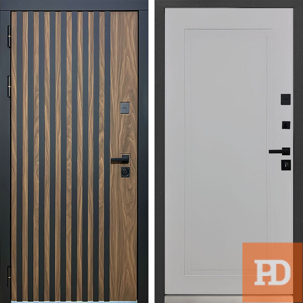 лист стали + ламинированная МДФ панель 12мм , цвет Орех Американский мокко, вставка+ наличник Антрацит софт |