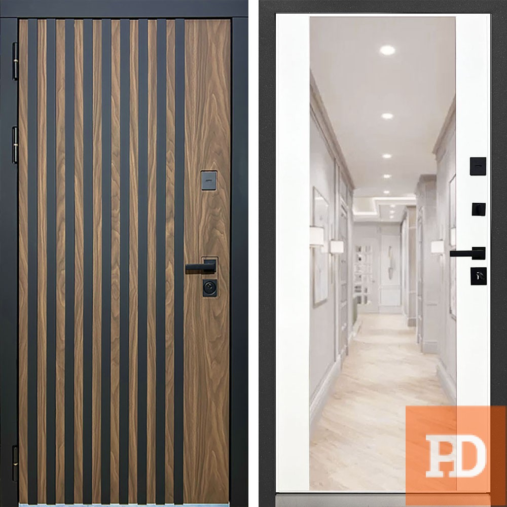 лист стали + ламинированная МДФ панель 12мм , цвет Орех Американский мокко, вставка+ наличник Антрацит софт