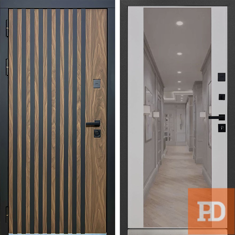лист стали + ламинированная МДФ панель 12мм , цвет Орех Американский мокко, вставка+ наличник Антрацит софт |