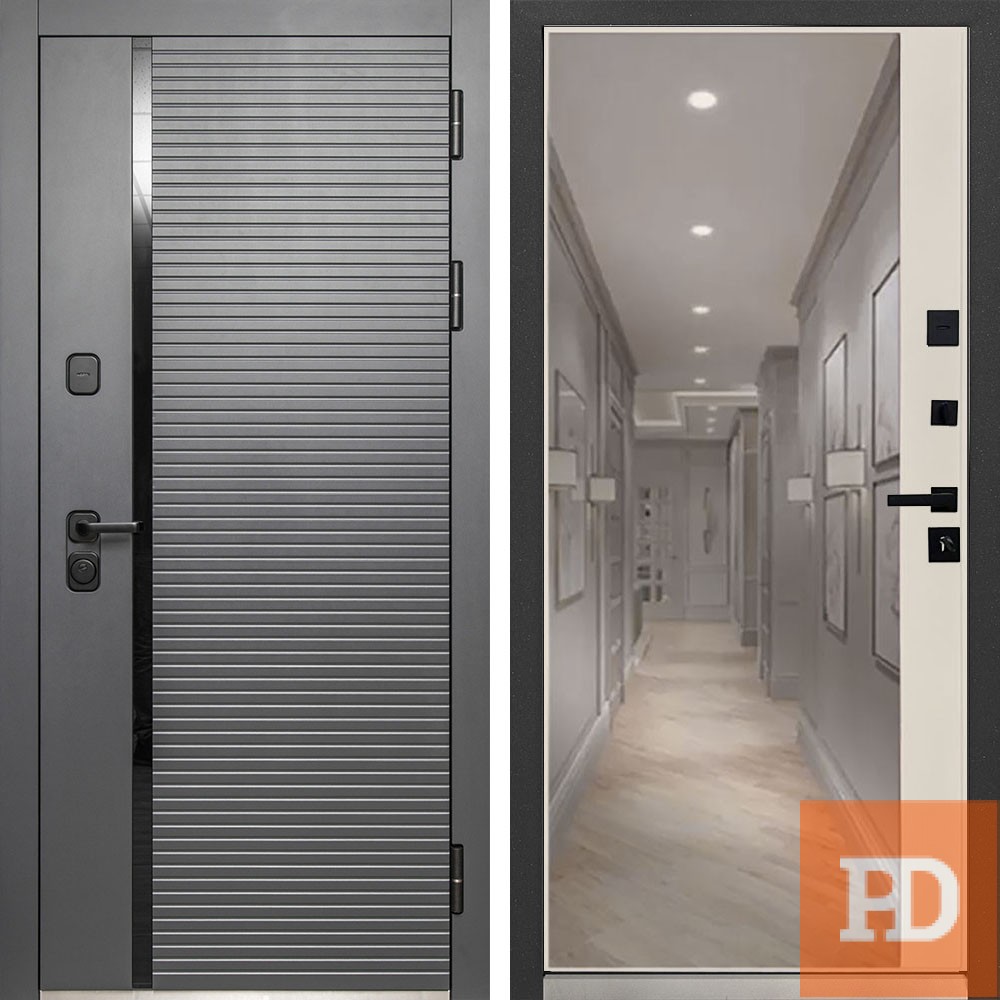 лист стали + ламинированная МДФ панель 12мм , цвет Антрацит софт + вставка из черного стекла акрила |