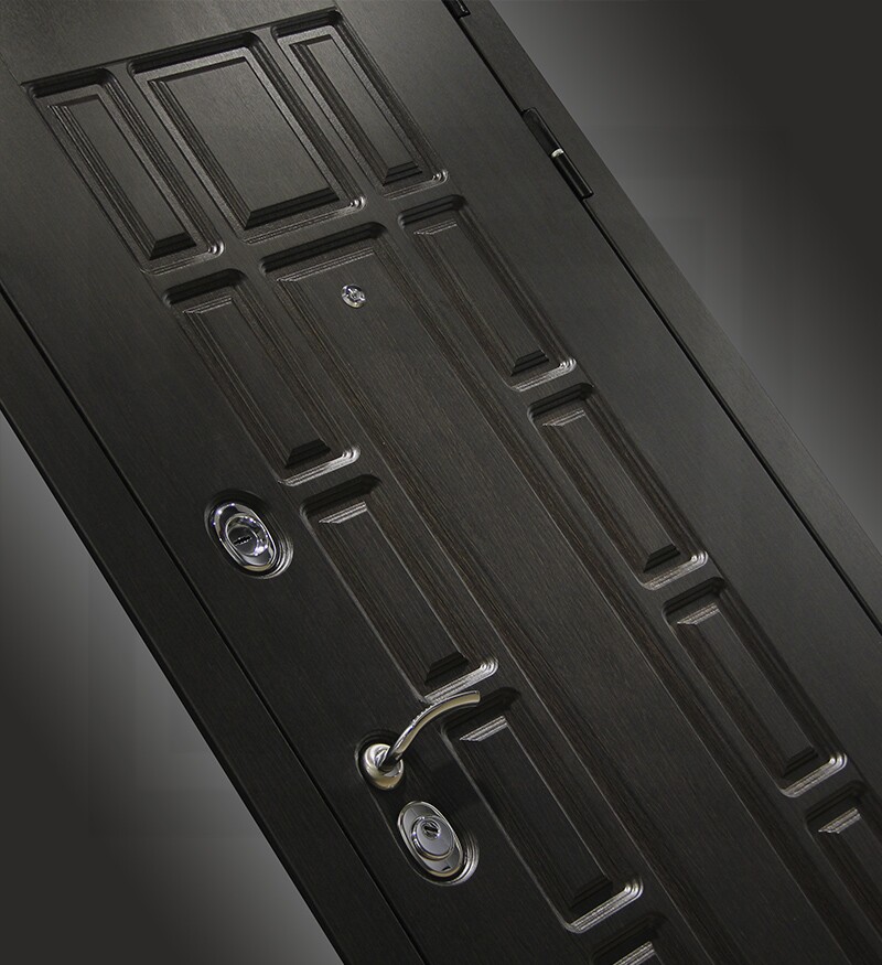 | Полный комплект | Броненакладка врезная, накладки под сувальдный замок, глазок , дверная ручка, ночная задвижка, цилиндр ключ-вертушка (производитель не регламентируется), регулируемый эксцентрик. |