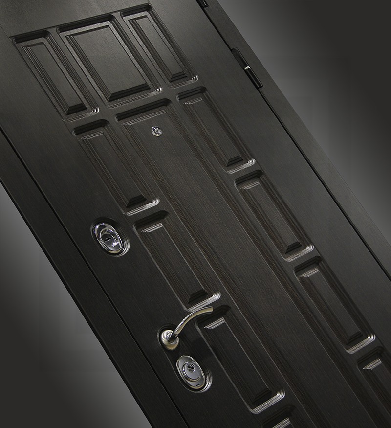 Полный комплект Броненакладка врезная, накладки под сувальдный замок, глазок , дверная ручка, ночная задвижка, цилиндр ключ-вертушка (производитель не регламентируется), регулируемый эксцентрик.