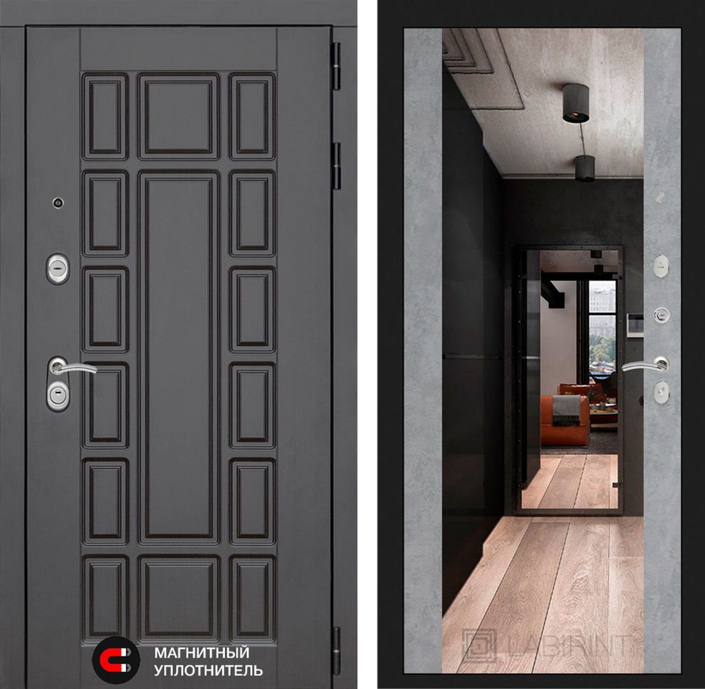 | Внутренняя отделка | Декоративная МДФ панель 12 мм с широким зеркалом, цвет "Бетон светлый" |