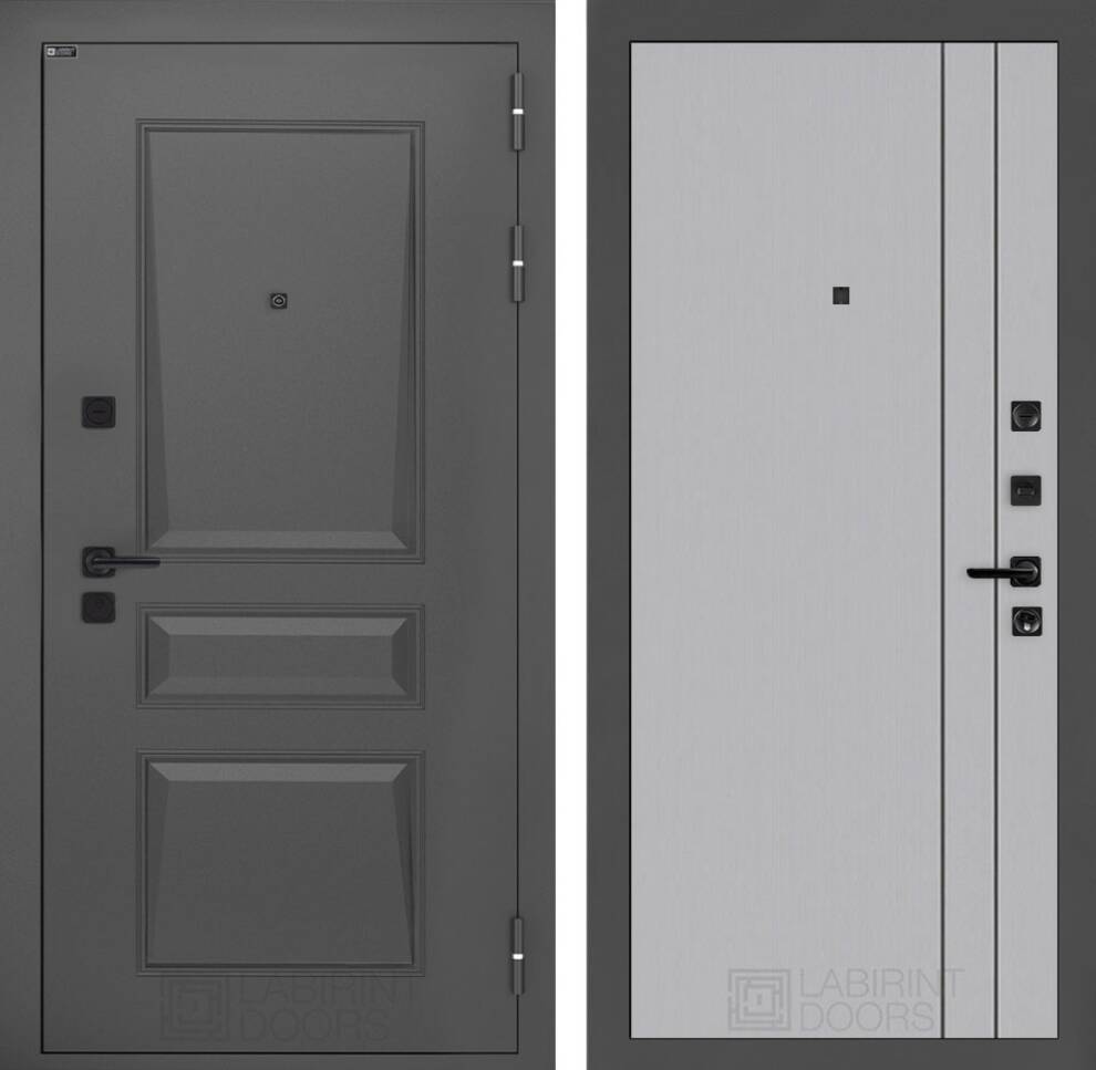 | Полный комплект | Фурнитура в черном цвете: Броненакладка врезная, накладка со шторкой, глазок , дверная ручка, ночная задвижка. Цилиндр ключ-вертушка (производитель не регламентируется), регулируемый эксцентрик. |