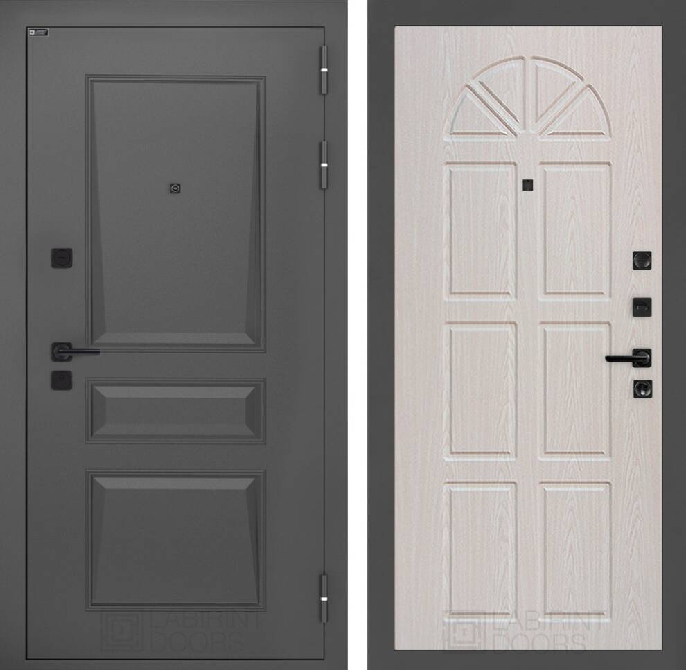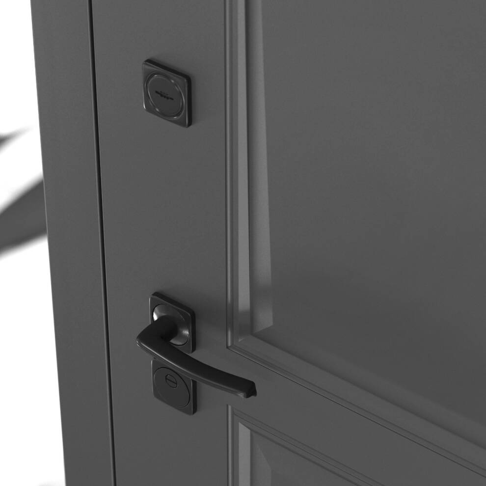| Полный комплект | Фурнитура в черном цвете: Броненакладка врезная, накладка со шторкой, глазок , дверная ручка, ночная задвижка. Цилиндр ключ-вертушка (производитель не регламентируется), регулируемый эксцентрик. |
