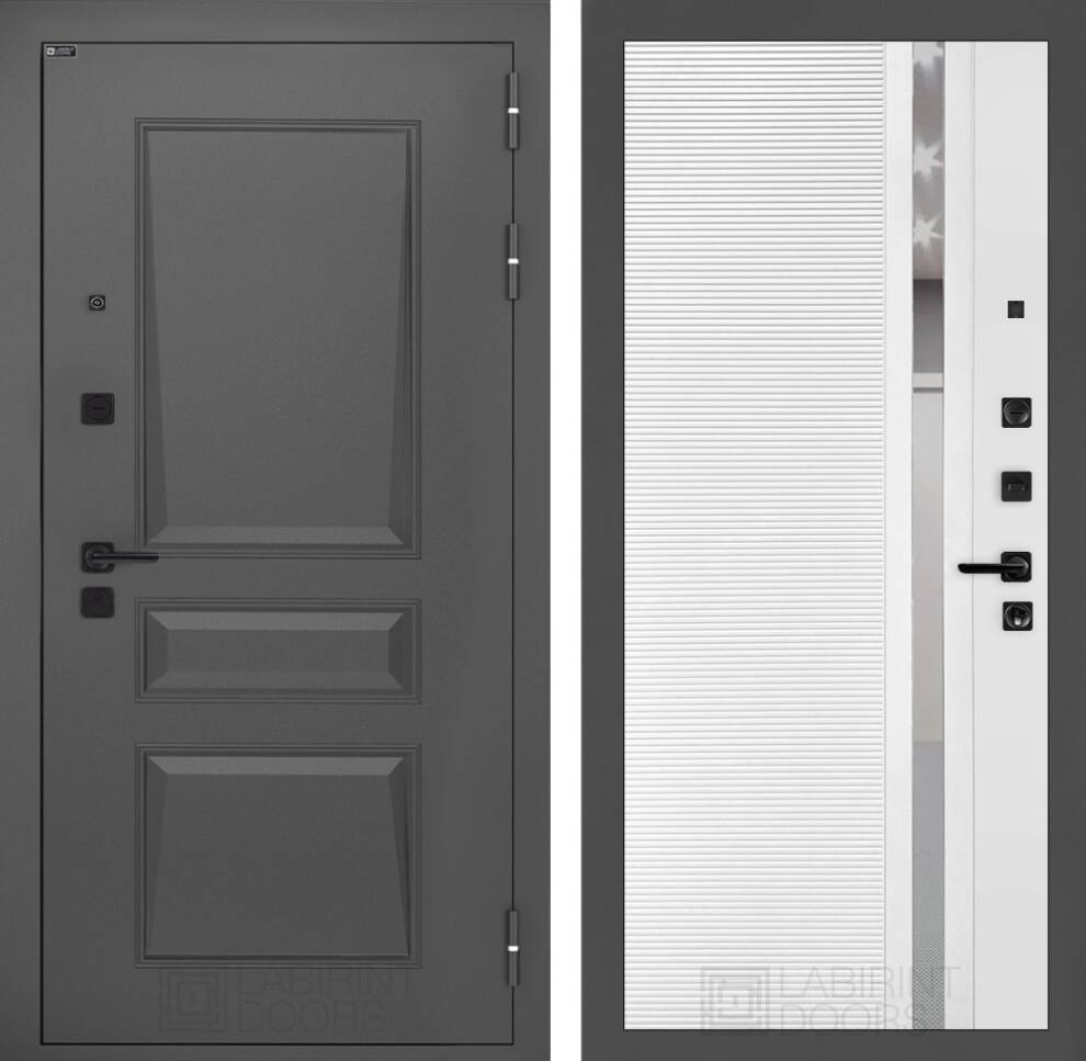 | Полный комплект | Фурнитура в черном цвете: Броненакладка врезная, накладка со шторкой, глазок , дверная ручка, ночная задвижка. Цилиндр ключ-вертушка (производитель не регламентируется), регулируемый эксцентрик. |