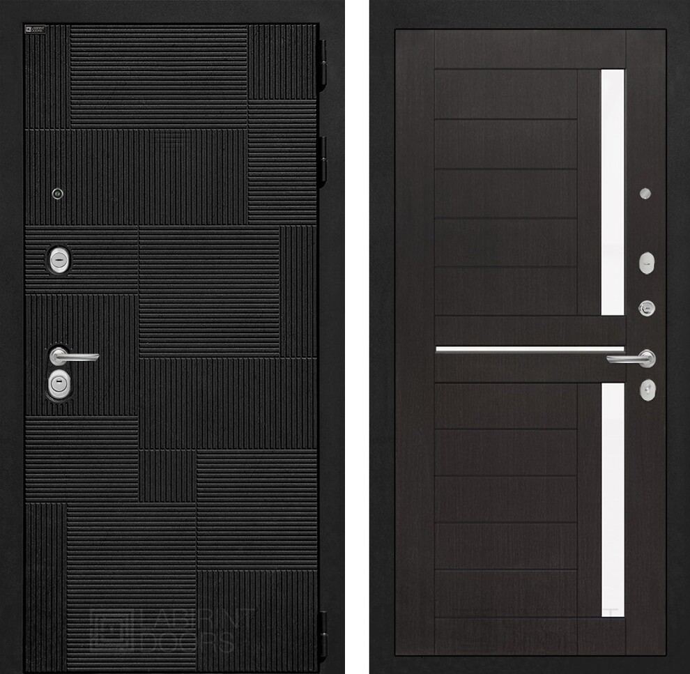 | Полный комплект | Броненакладка врезная, накладки под сувальдный замок, глазок , дверная ручка, ночная задвижка, цилиндр ключ-вертушка (производитель не регламентируется), регулируемый эксцентрик. |