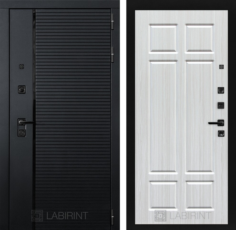 | Полный комплект | Фурнитура в черном цвете: Броненакладка врезная, накладка со шторкой, глазок , дверная ручка, ночная задвижка. Цилиндр ключ-вертушка (производитель не регламентируется), регулируемый эксцентрик. |