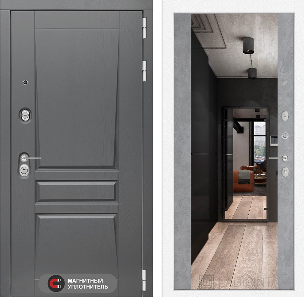 | Внутренняя отделка | Декоративная МДФ панель 12 мм с широким зеркалом, цвет "Бетон светлый" |