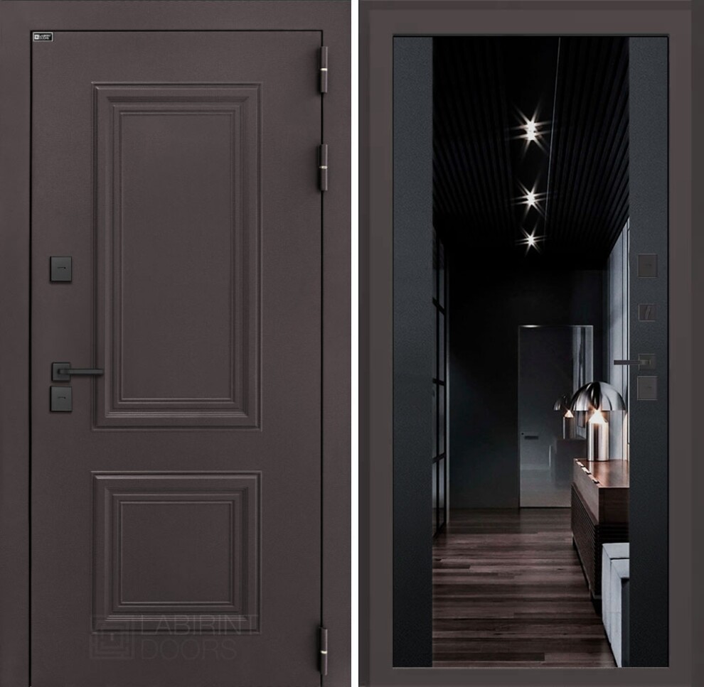Входная дверь Полярис лайт с тонированным зеркалом Максимум — Черный кварц