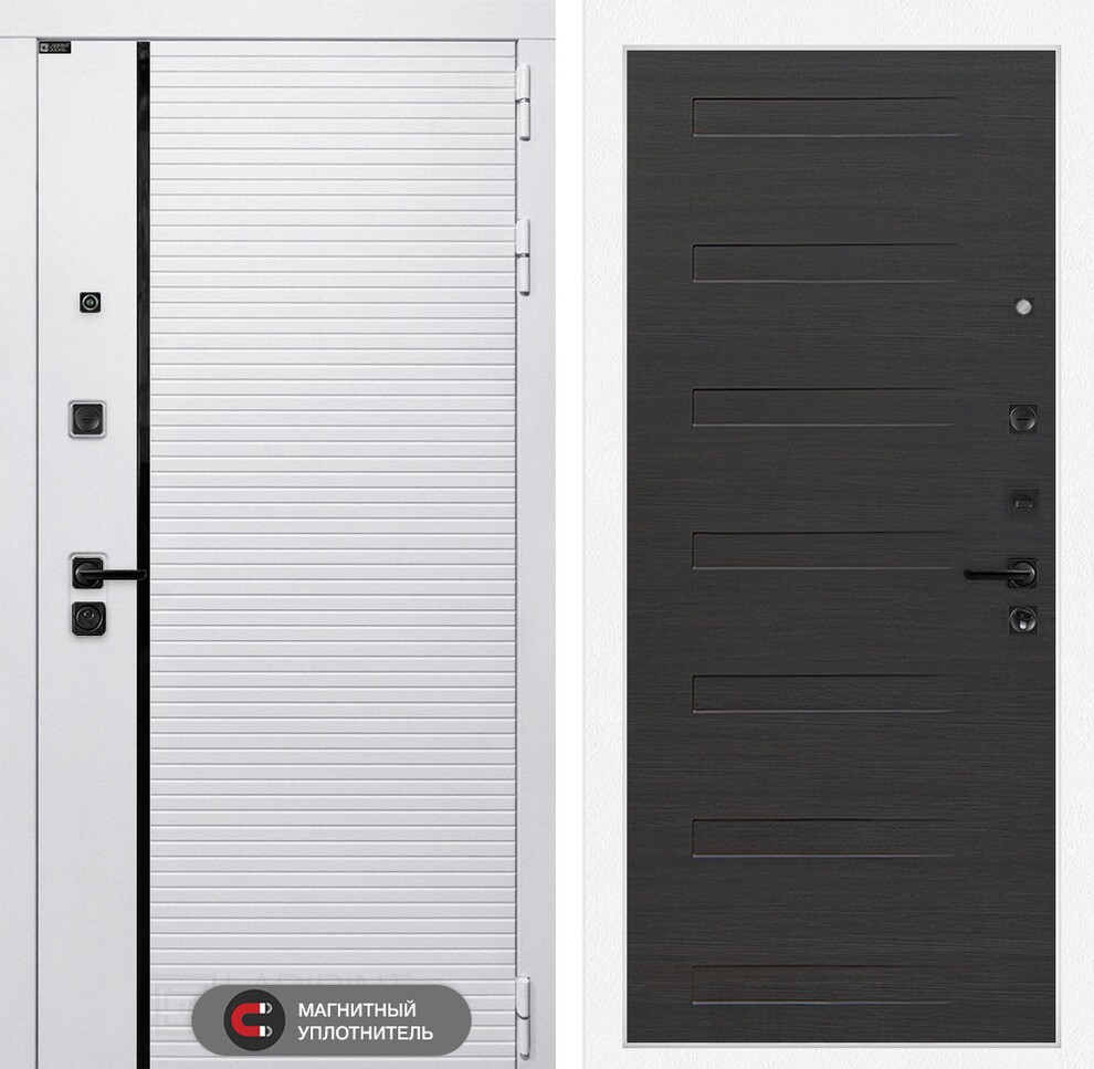 | Полный комплект | Фурнитура в черном цвете: Броненакладка врезная, накладка со шторкой, глазок , дверная ручка, ночная задвижка. Цилиндр ключ-вертушка (производитель не регламентируется), регулируемый эксцентрик. |