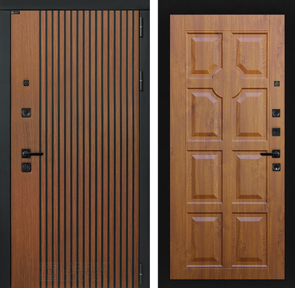 | Полный комплект | Фурнитура в черном цвете: Броненакладка врезная, накладка со шторкой, глазок , дверная ручка, ночная задвижка. Цилиндр ключ-вертушка (производитель не регламентируется), регулируемый эксцентрик. |