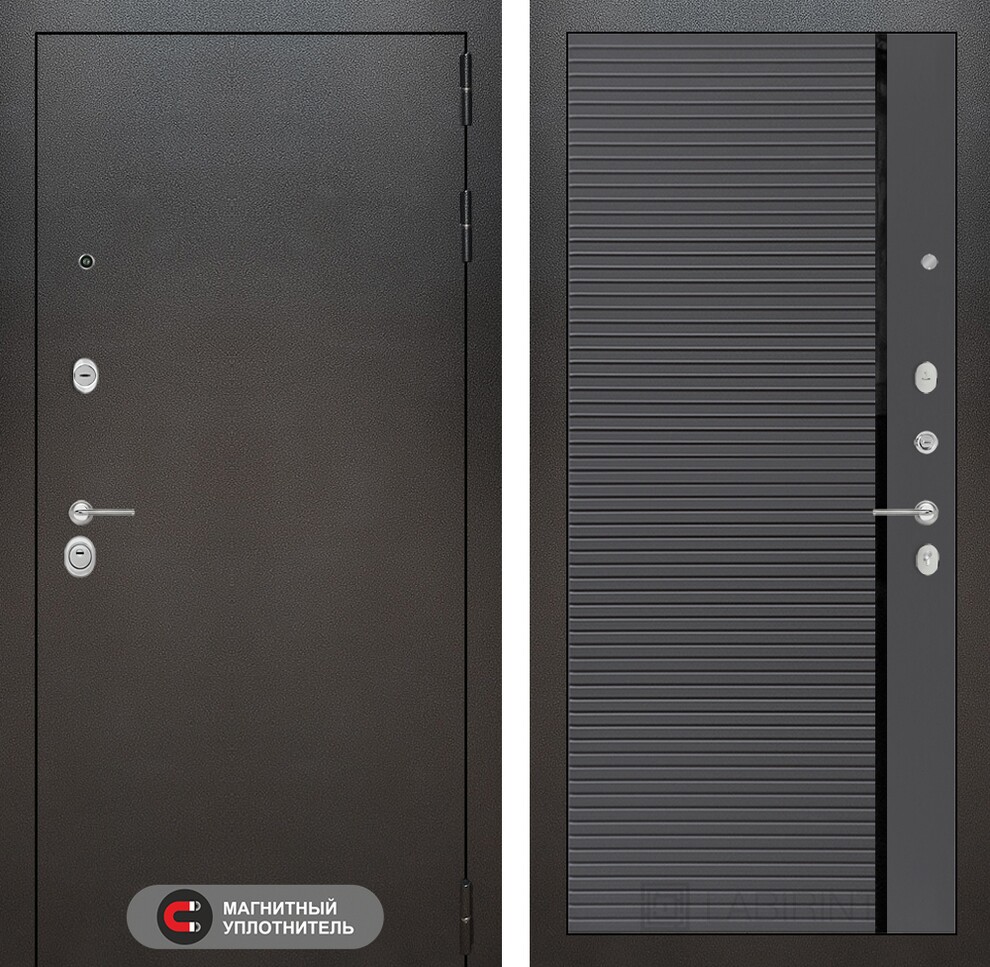 Входная дверь Сильвер 22 — Графит софт, черная вставка
