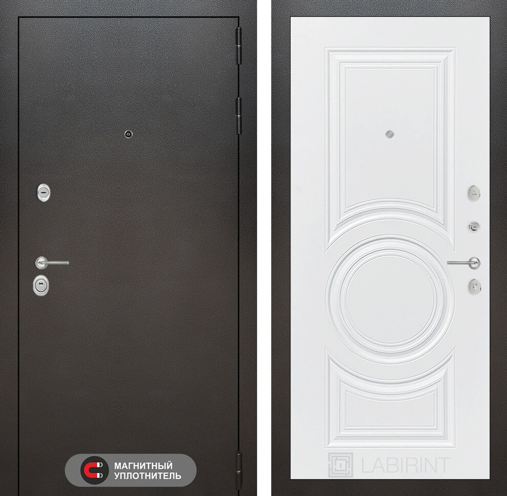 | Полный комплект | Броненакладка врезная, накладки под сувальдный замок, глазок , дверная ручка, ночная задвижка, цилиндр ключ-вертушка (производитель не регламентируется), регулируемый эксцентрик. |
